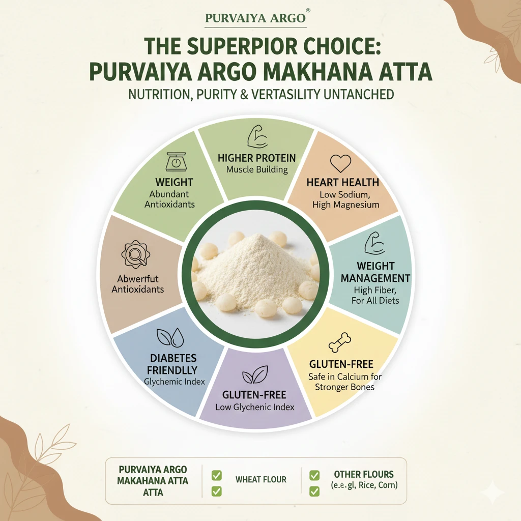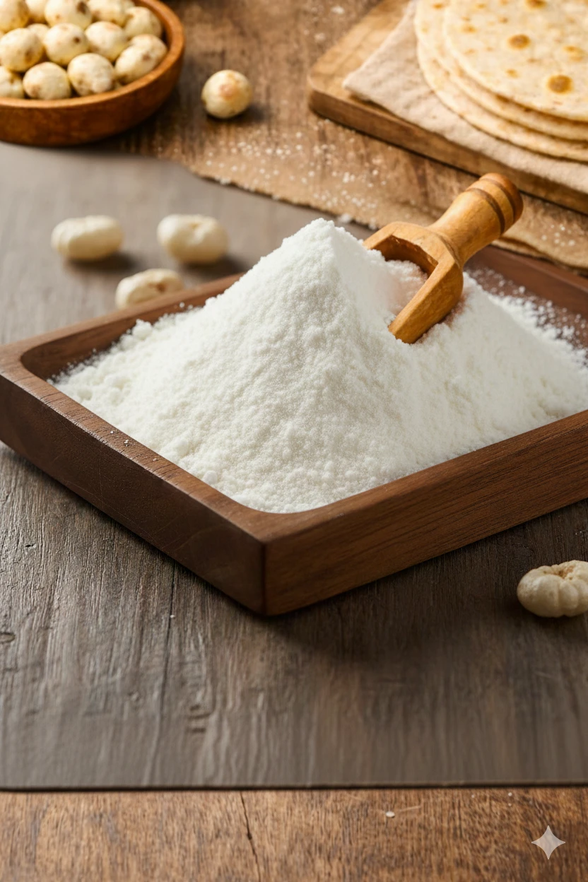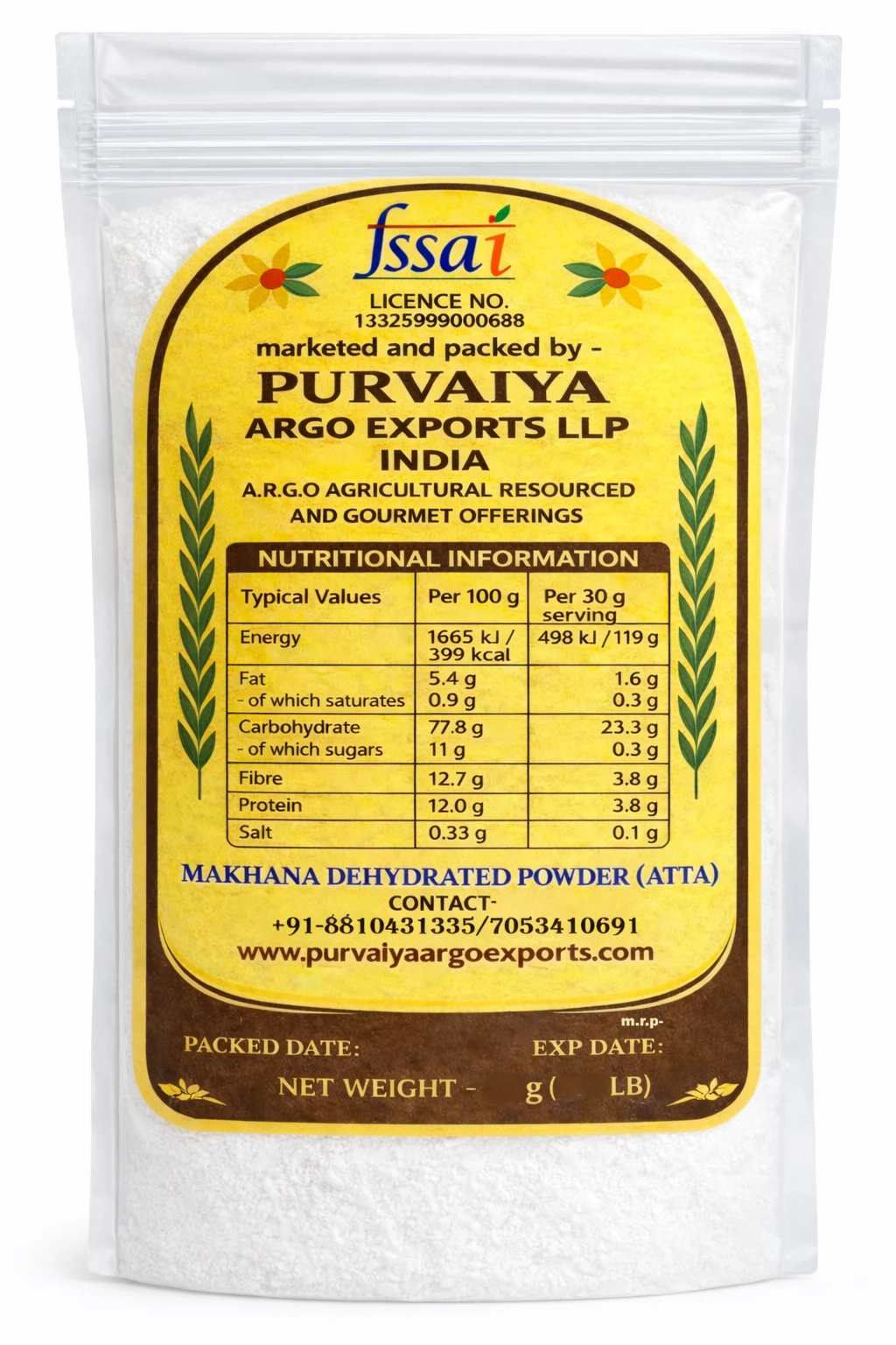 Makhana Dehydrated Powder – Purvaiya Argo’s Uses and Health Benefits Purvaiya Argo’s Makhana Dehydrated Powder is a natural, nutritious product made from high-quality fox nuts (makhana) sourced from the fertile regions of Bihar, India—globally known for producing the finest makhana. The fox nuts are carefully cleaned, hygienically roasted, and gently dehydrated before being finely ground into a smooth powder. This controlled process helps preserve the natural nutrients, taste, and purity of makhana, making it a wholesome addition to everyday diets. Makhana dehydrated powder is valued for its versatility, easy digestibility, and rich nutritional profile. It has been traditionally used in Indian households for generations and is now gaining global recognition as a healthy, plant-based superfood. |