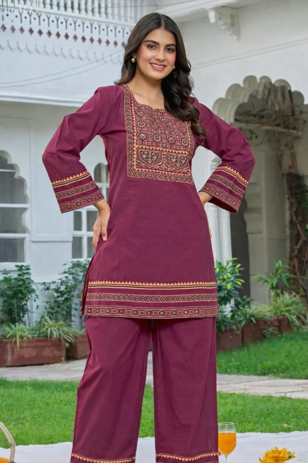 BEST GIRL COTTON KURTA PANT SET WITH FLORAL PRINT 3/4 SLEEVE V-NECK BEST COR SET FOR GIRLS & WOMEN BEST RAJWADA CO-ORD |
