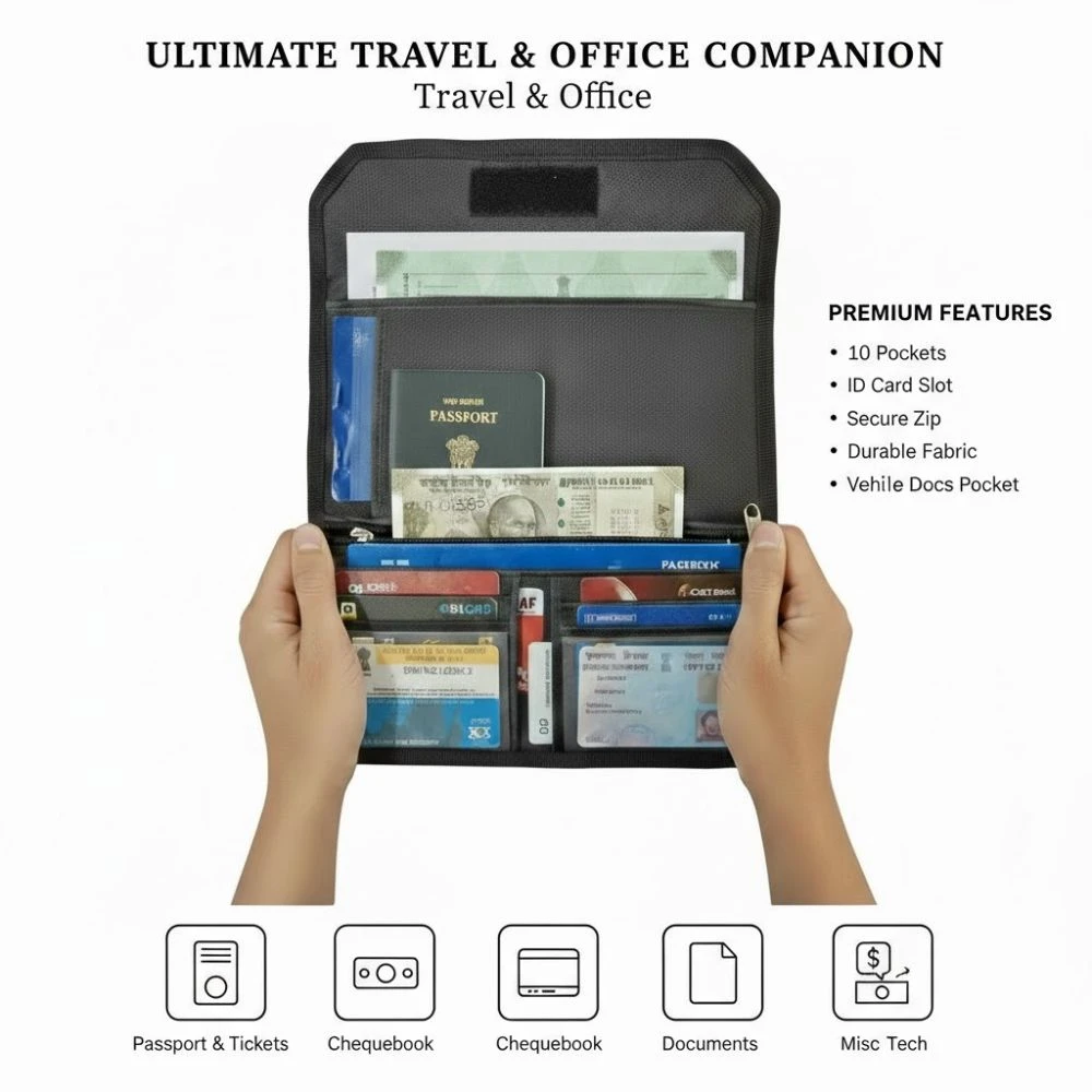 Ransh Multiple Cheque Book Holder Or Card Holder with 10 Multi Pocket (Dashing Black)