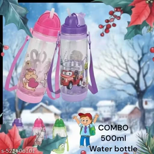 SET OF 2 PIS SCHOOL WATER BOTTLE 500 ML PLASTIC WATER BOTTLE WITH STRAW AND HANGING BELT long lasting School water bottle |