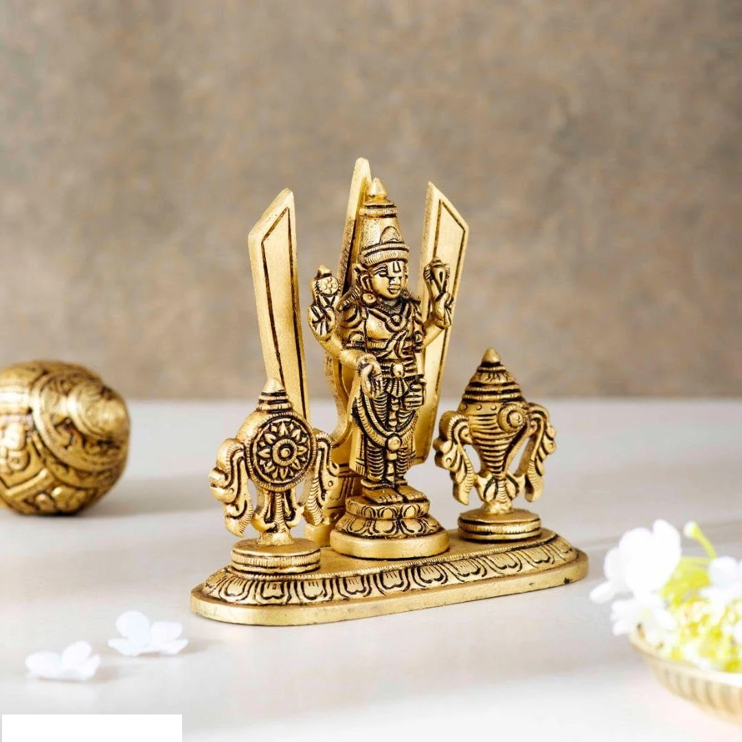 Material :- Allumnium Color :- Golden Size (Length X Width X Height) :- 10 X 5 X 10 CM Weight (gms) :-80 Elevate your home or office decor with our exquisite Shankh Chakra with Naman Balaji Statue Idol. This beautifully crafted brass decorative piece combines spirituality and artistry, making it an ideal addition to your car dashboard, home, or office table. |