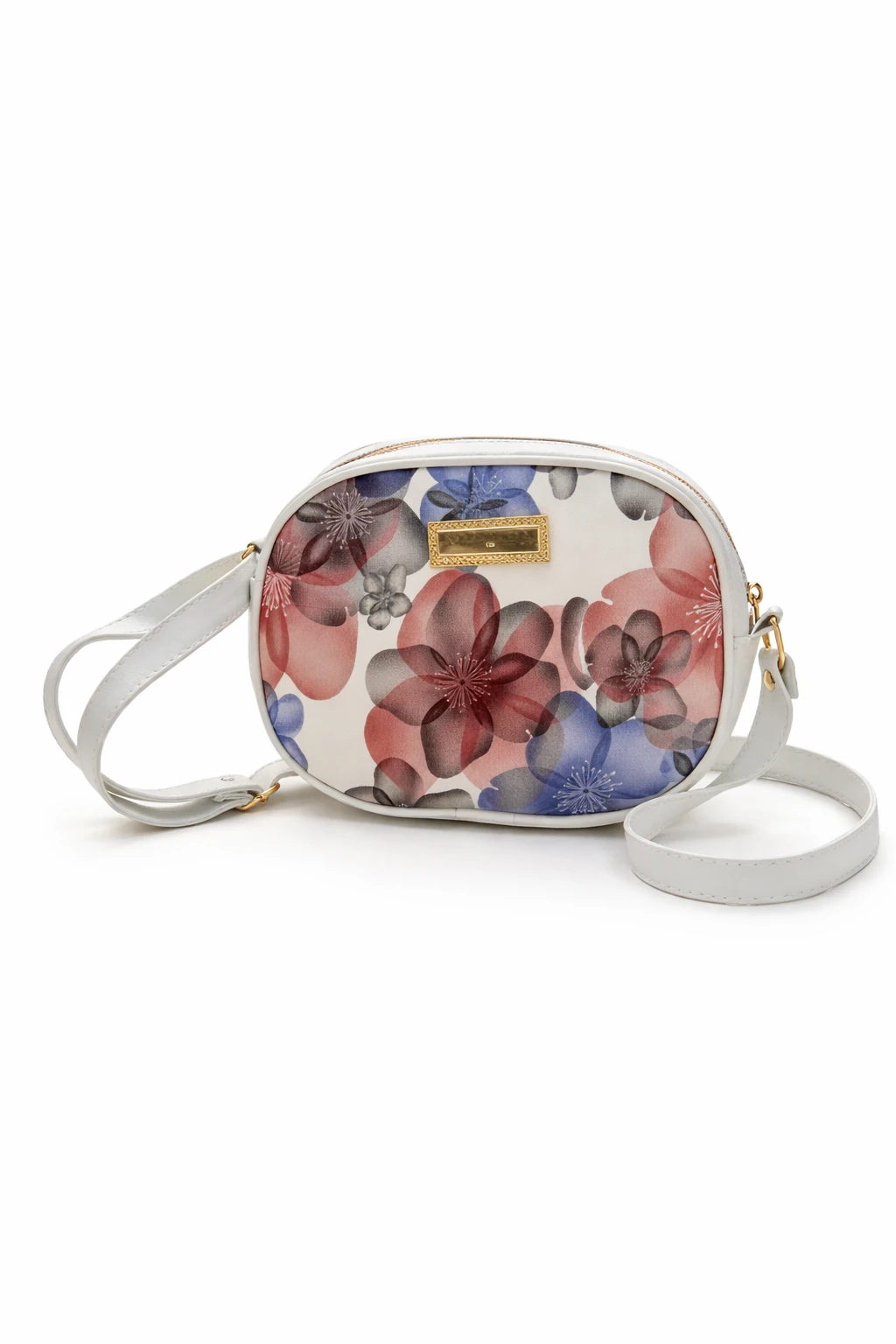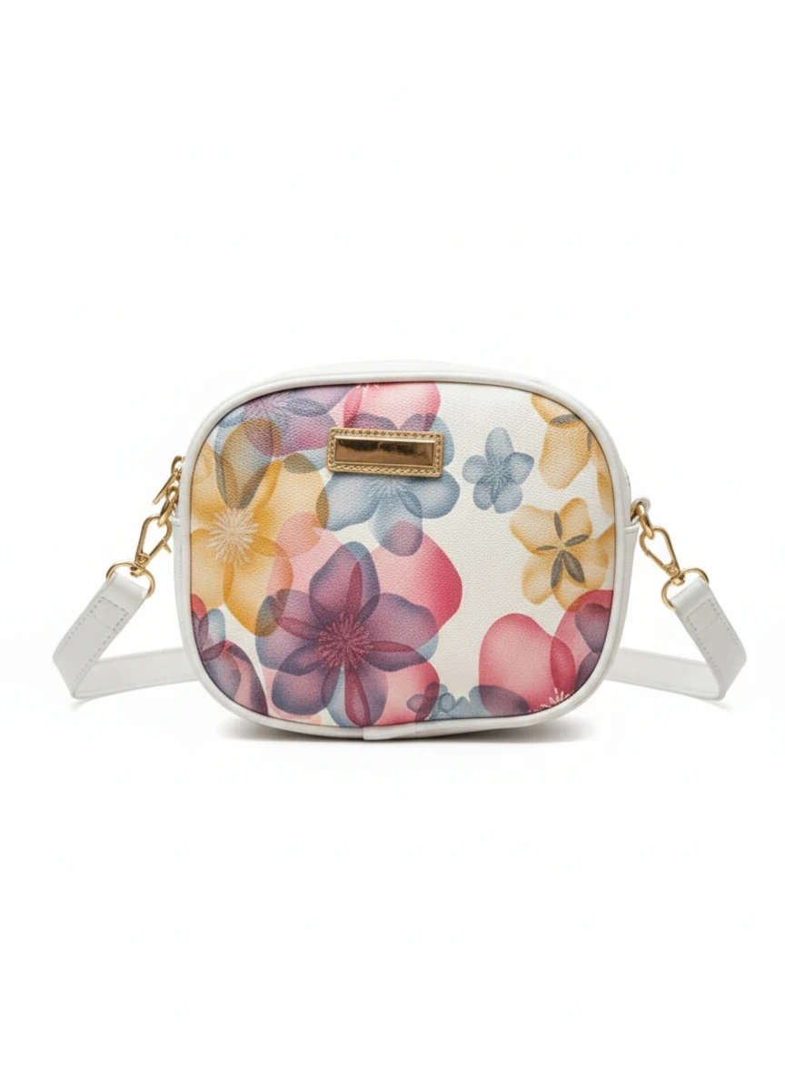 Height=6 inch, Width=3 inch, Length=7 inch Add a touch of charm and elegance to your look with this beautifully designed round floral sling bag. Featuring a soft pastel flower print with delicate 3D floral detailing on the front, this bag is perfect for casual outings, parties, brunch dates, and festive occasions. Crafted with premium quality material, this compact yet spacious bag allows you to carry your essentials like mobile phone, wallet, keys, makeup, and small accessories with ease. The stylish golden chain strap enhances the overall classy appearance and allows comfortable shoulder or crossbody wear. This lightweight and trendy sling bag is a must-have accessory for women and girls who love fashionable and unique designs. |