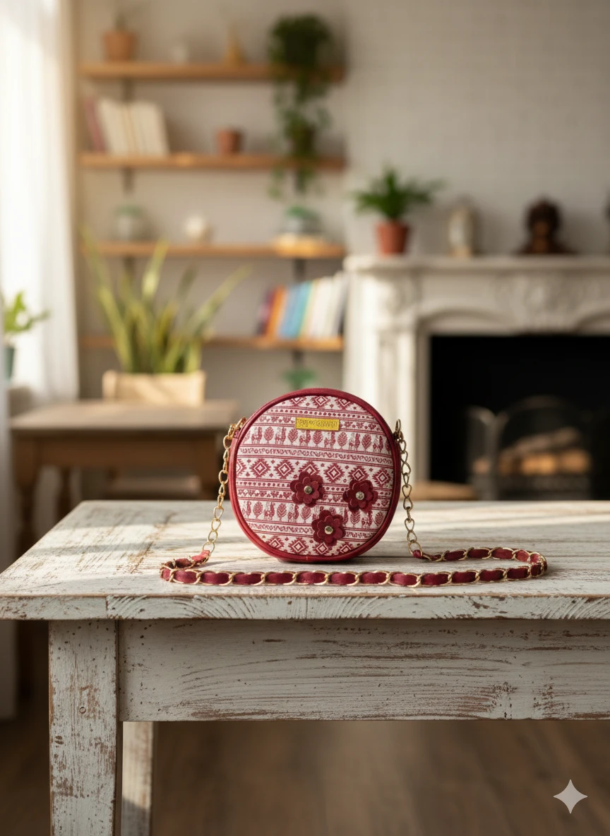 Height=7 inch, Width=3 inch, Length=7 inch Add a touch of elegance to your outfit with this stylish Round Floral Sling Bag. Designed with a beautiful pastel floral print and delicate 3D flower embellishments, this purse is perfect for casual outings, parties, brunch dates, and festive occasions. The compact round shape gives it a trendy look, while the premium-quality material ensures durability. It features a smooth zip closure to keep your essentials secure. The golden chain strap adds a classy finish and allows comfortable crossbody or shoulder carrying. |