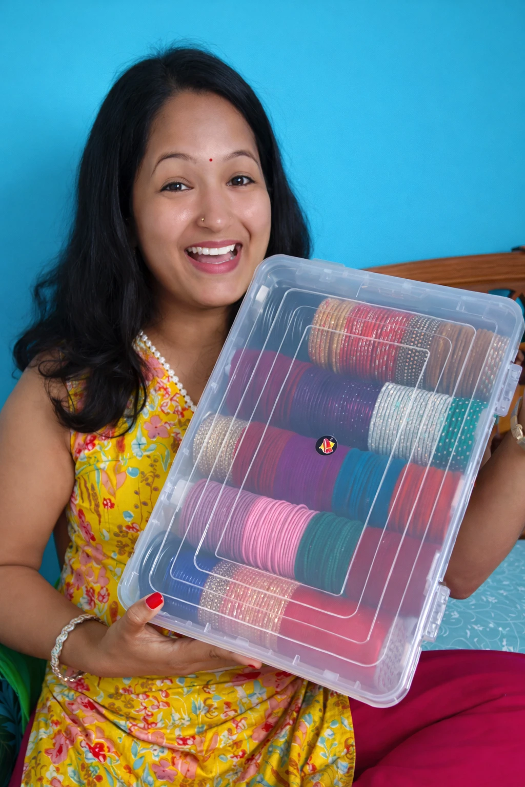 Convenient storage: Keep your bangles, chudi sets, bracelets, wristwatches, hair bands, scrunchies, and other accessories organized in one place. Air Tight Boxes,Multipurpose Usage.Heavy Quality plastic product. Adjustable design: The bangle box features 5 adjustable rods, allowing you to customize the compartments according to your needs. ADJUSTABLE RODS: Comes with 5 removable/adjustable rods to suit all types and sizes of bangles. PACKAGE CONTAINS: Adjustable 5 Rod Bangle Storage Boxes, Dimension: 40 x 25 x 10 cm.