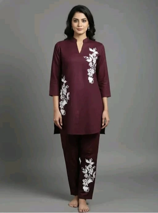 BEST GIRL COTTON KURTA PANT SET WITH FLORAL PRINT 3/4 SLEEVE V-NECK BEST COR SET FOR GIRLS & WOMEN BEST CO-ORD SET |