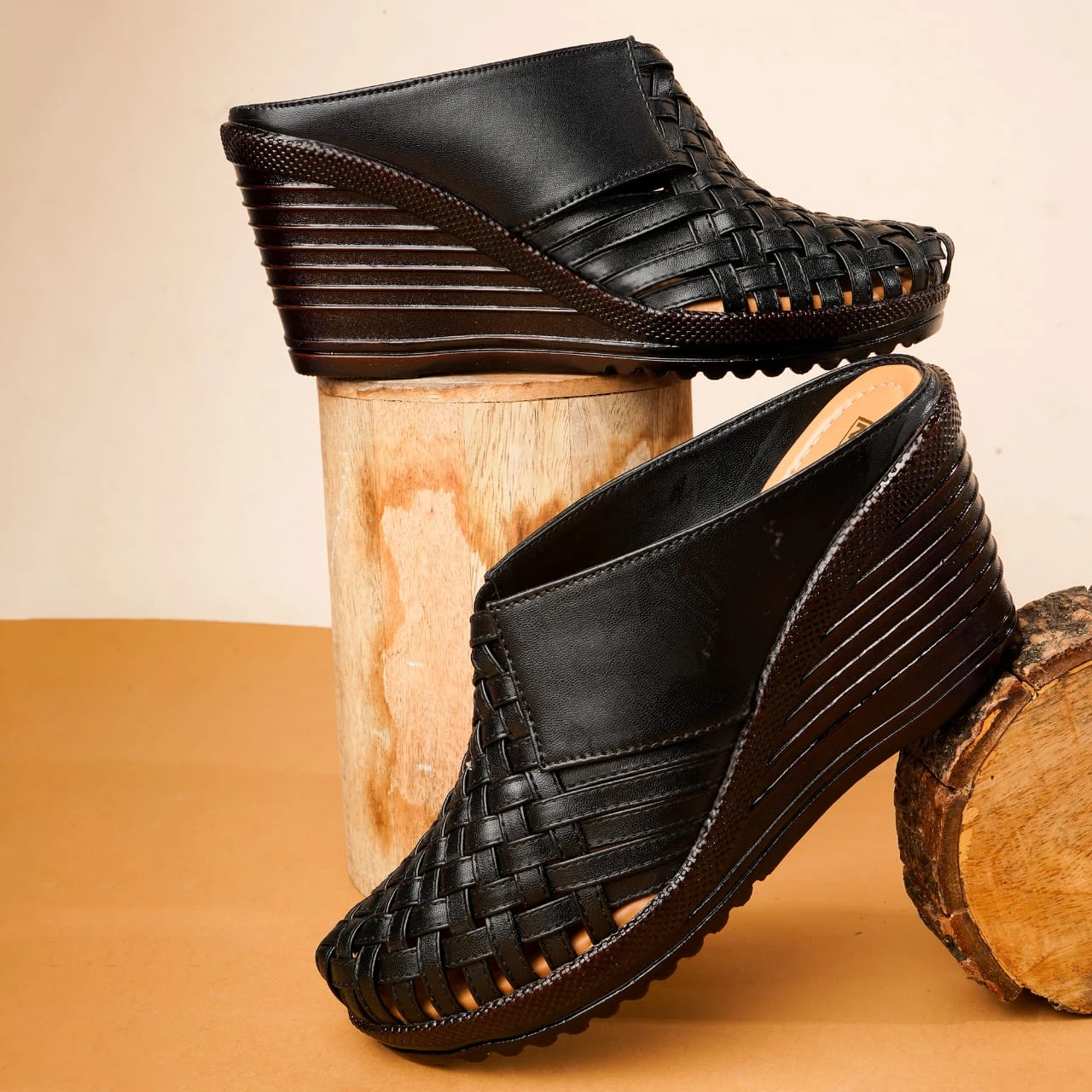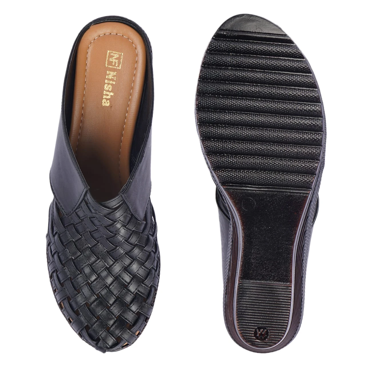 Women Mule Wedge Sandals | Slip-On Comfort Heels | Lightweight Cushioned Sole | Stylish Casual & Daily Wear Footwear | Soft Cushion Footbed | Comfortable Everyday Wear 561 Brown |
