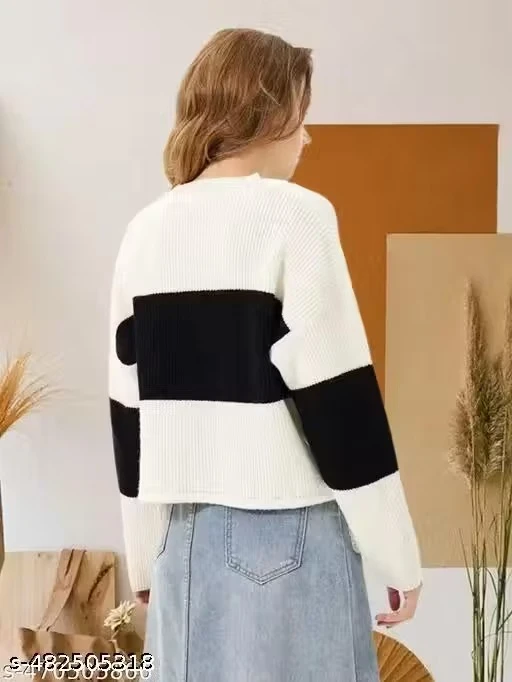 This stylish Women's Black and White Striped Knit Sweater is the perfect blend of comfort and modern fashion. Designed with a timeless horizontal block pattern, this sweater offers a relaxed yet flattering fit that works for any casual or semi-formal occasion. |