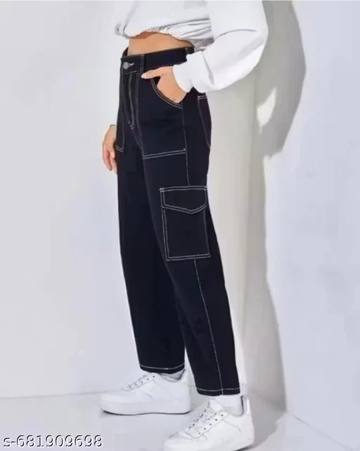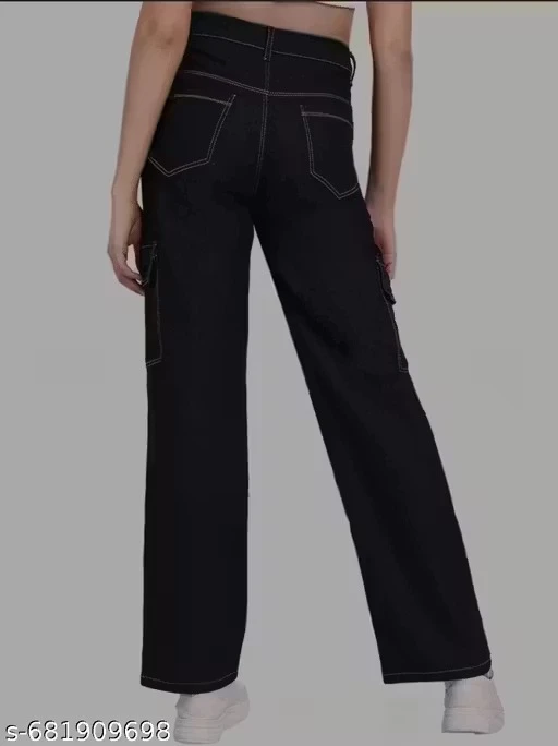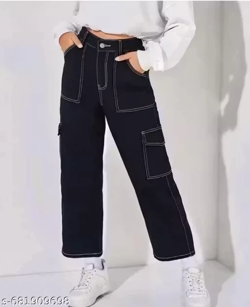 Relaxed Fit 6Pocke Black Jeans ā Women & Girls, High-Waist Style Side Pocket Cargo |