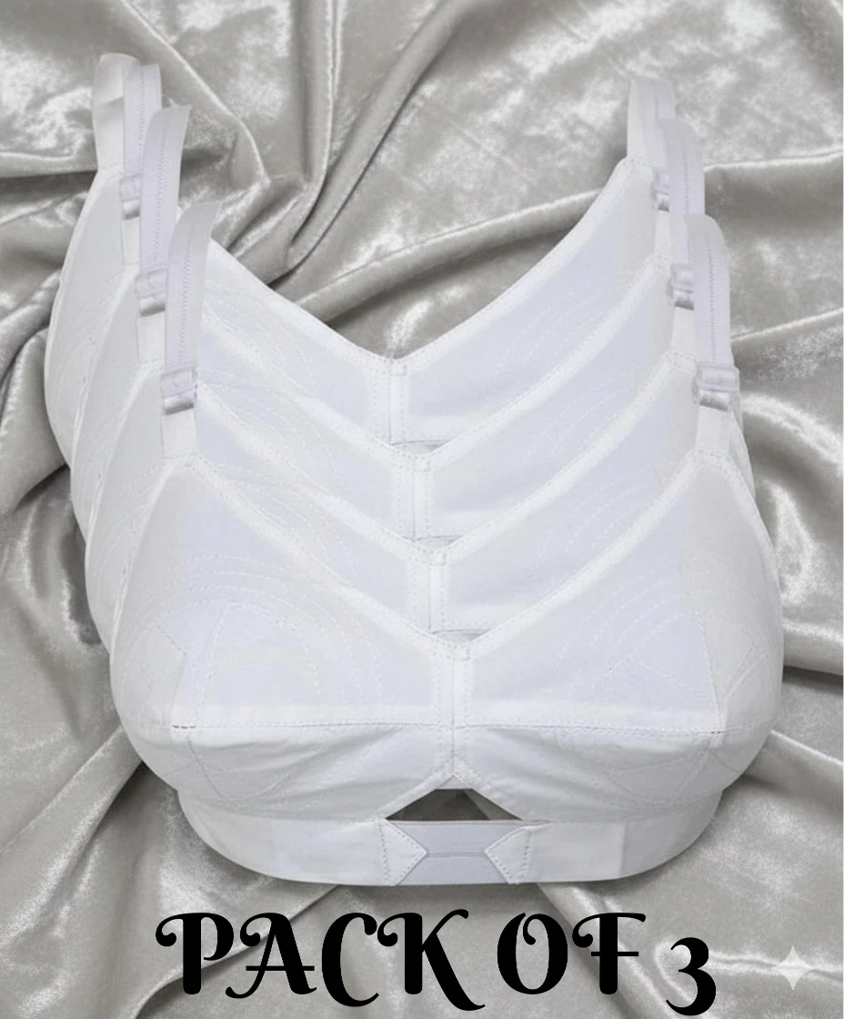 Upgrade your daily essentials with this comfortable and breathable cotton bra combo pack. Designed for all-day wear, these non-padded bras provide full coverage and a natural shape without compromising on comfort. The soft cotton fabric ensures maximum breathability, making it perfect for everyday use. With a snug fit and stretchable fabric, these bras offer excellent support while keeping you relaxed throughout the day. Ideal for regular wear, work, or home use. Key Features: • Fabric: Soft & breathable cotton • Type: Non-padded, full coverage • Comfort fit for everyday wear • Skin-friendly and lightweight • Stretchable straps for better support • Combo pack of 2 bras Suitable For: Daily wear, office wear, casual use Wash Care: Hand wash recommended for longer durability |